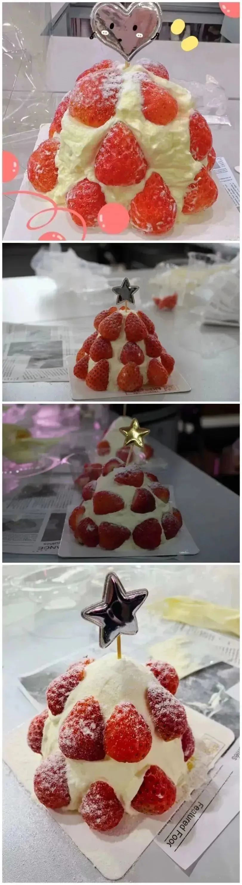 听完老师的讲解后,大家跃跃欲试,纷纷开始动手制作属于自己的蛋糕。大家小心翼翼的从下往上摊平蛋糕坯、挤上奶油、铺上草莓,重复步骤直至成高高的塔状,最后撒上糖粉、插上装饰品,一个素色的蛋糕胚就变成了美味可口的草莓塔蛋糕。